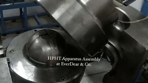 Natural diamonds form in underground, High Pressure and High Temperature (HPHT) environments. An HPHT press simulates this natural environment. The HPHT process begins with a small diamond seed that is placed into a pure carbon sourced from personal ashes. That seed is exposed to intense pressure and heat, over 2000°C. The carbon melts and a diamond begins to form around the seed. A cremation diamond is born and starts to grow like a shining star.